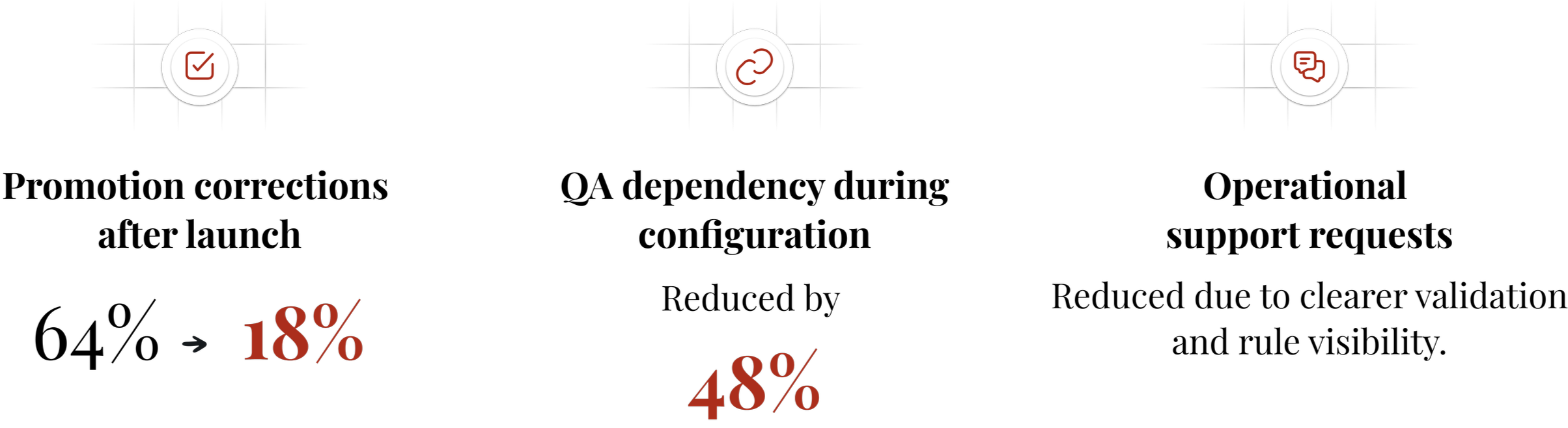 The introduction of validation logic and confirmation layers helped ensure that promotions were configured correctly before going live.
