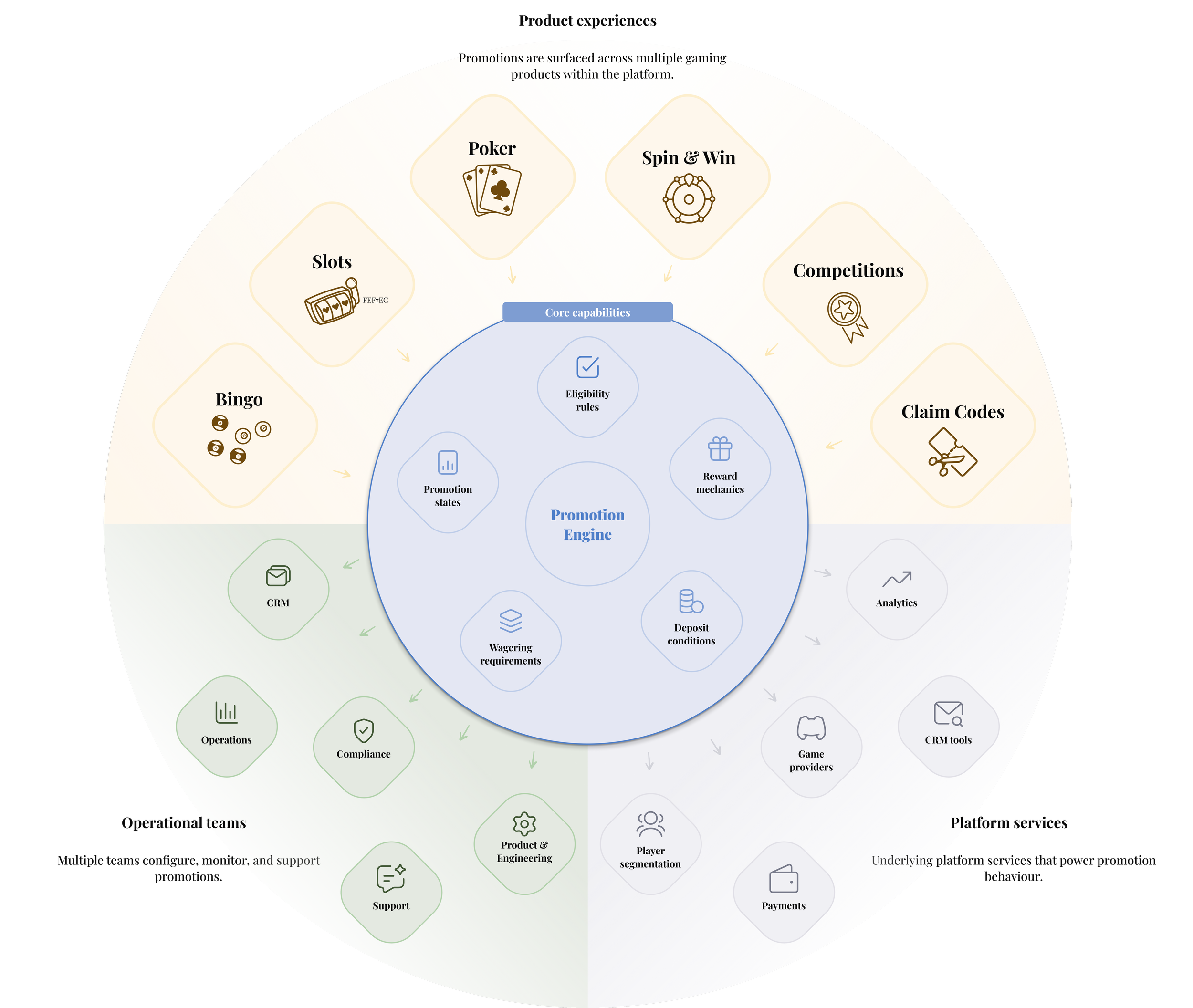 What it does: through a series of cross-functional workshops, the incentive ecosystem was mapped to define how promotions should behave from player entry points through to reward outcomes.