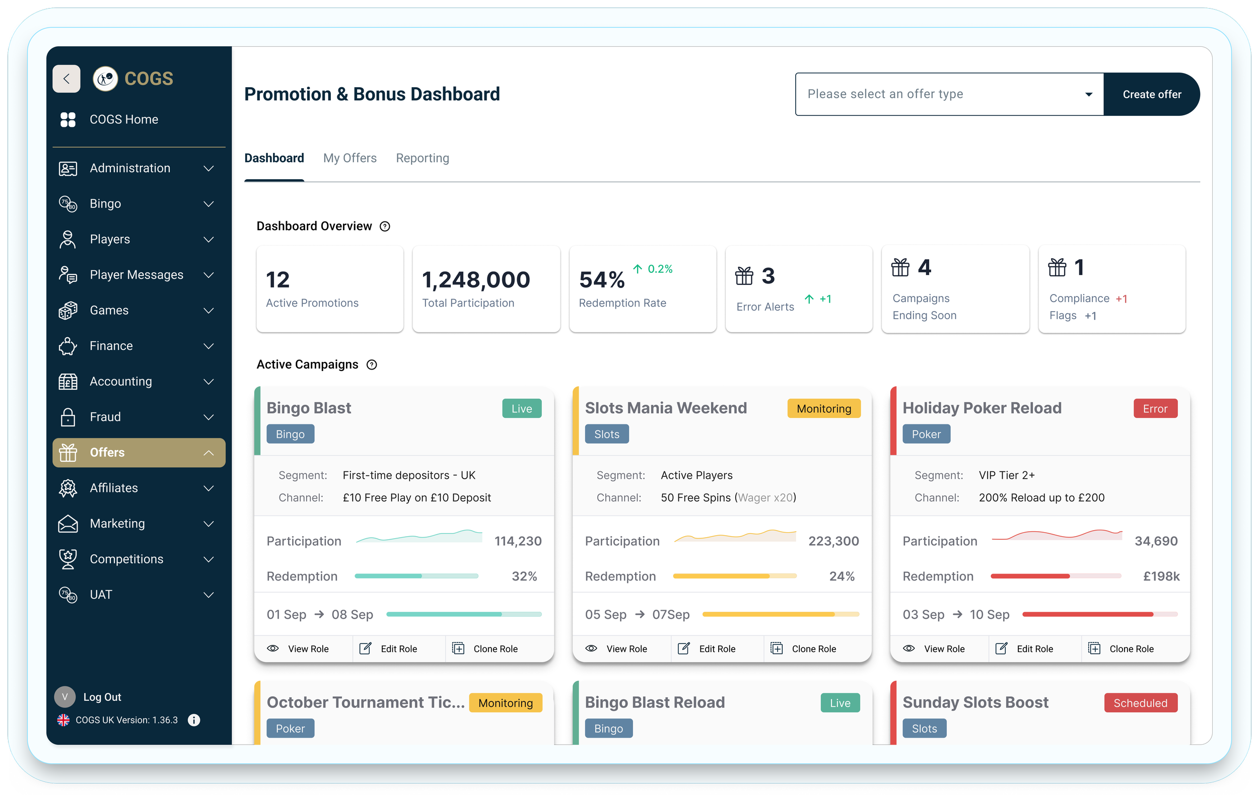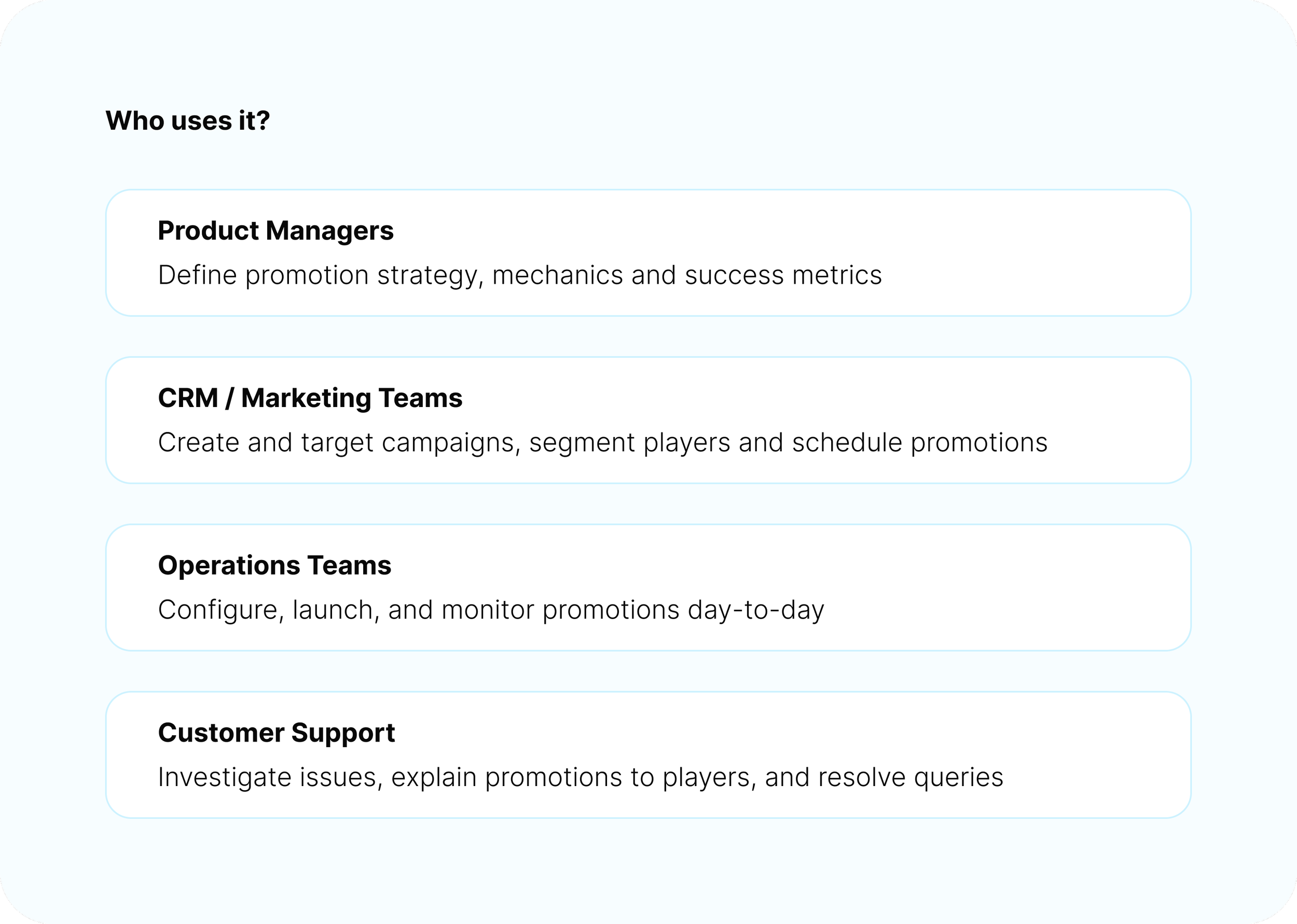 The Bonus Engine was used by multiple internal teams to configure and manage promotional campaigns across the digital platform.