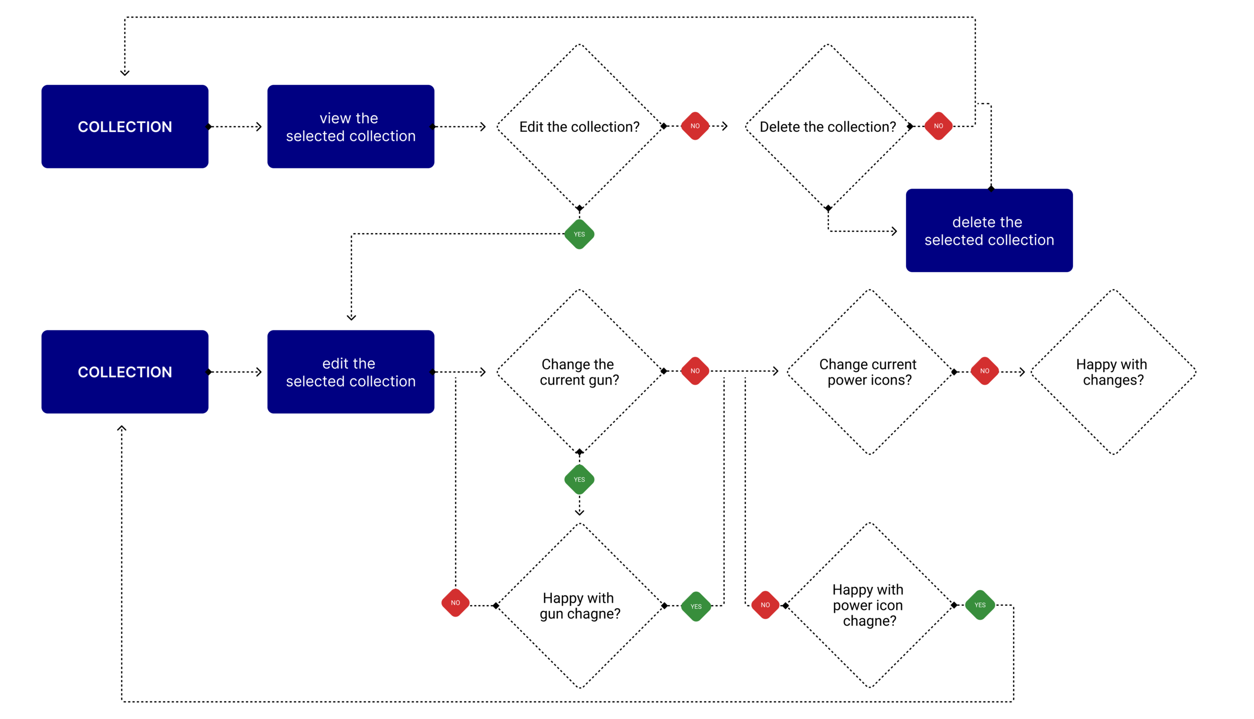 User can edit one of the collections. Remove and add power icons and change the gun type.