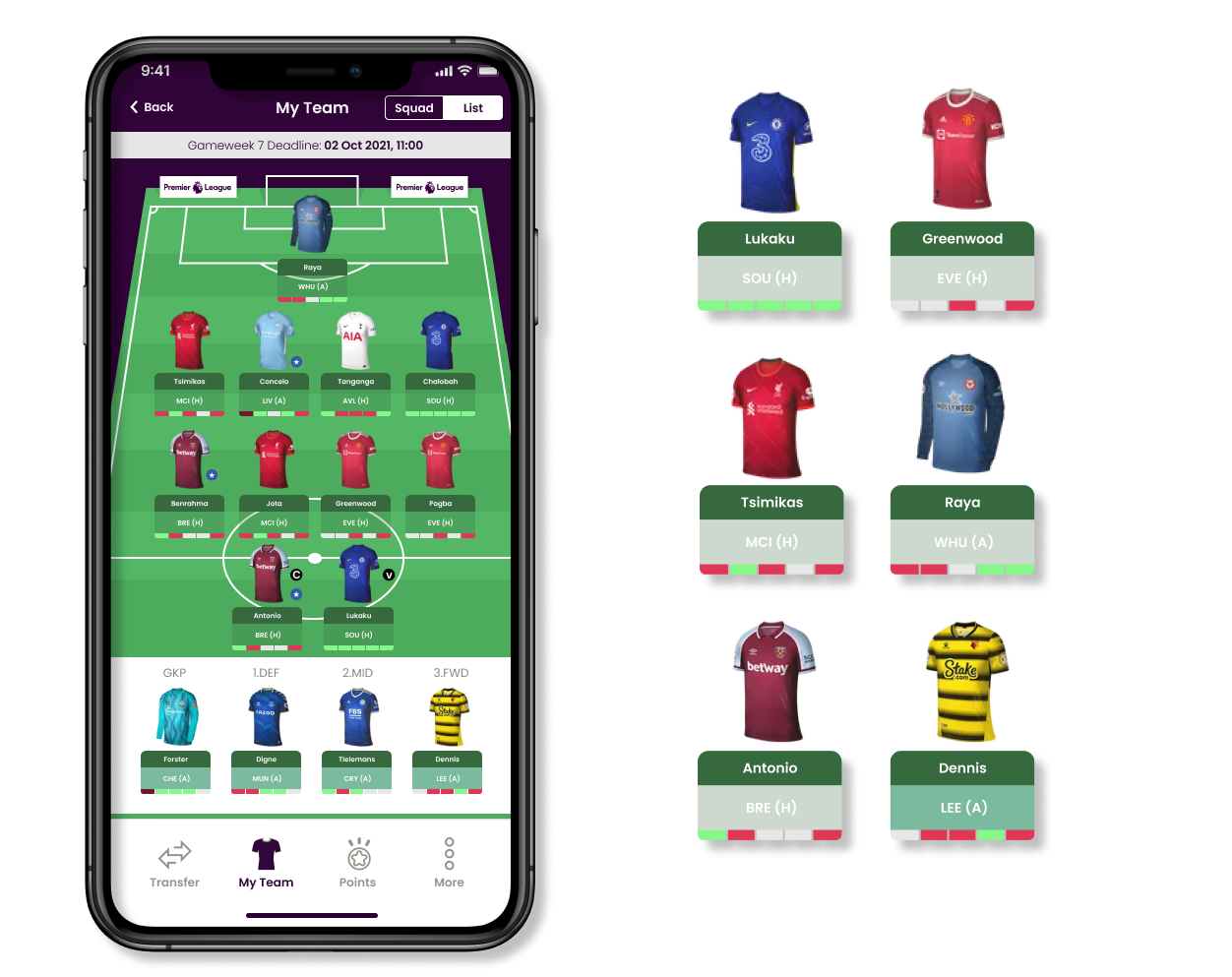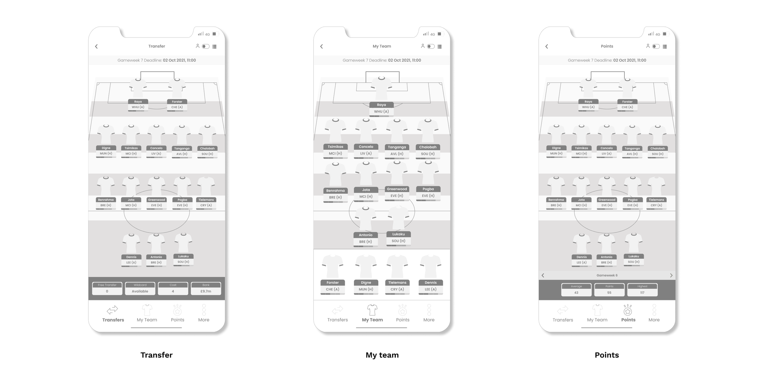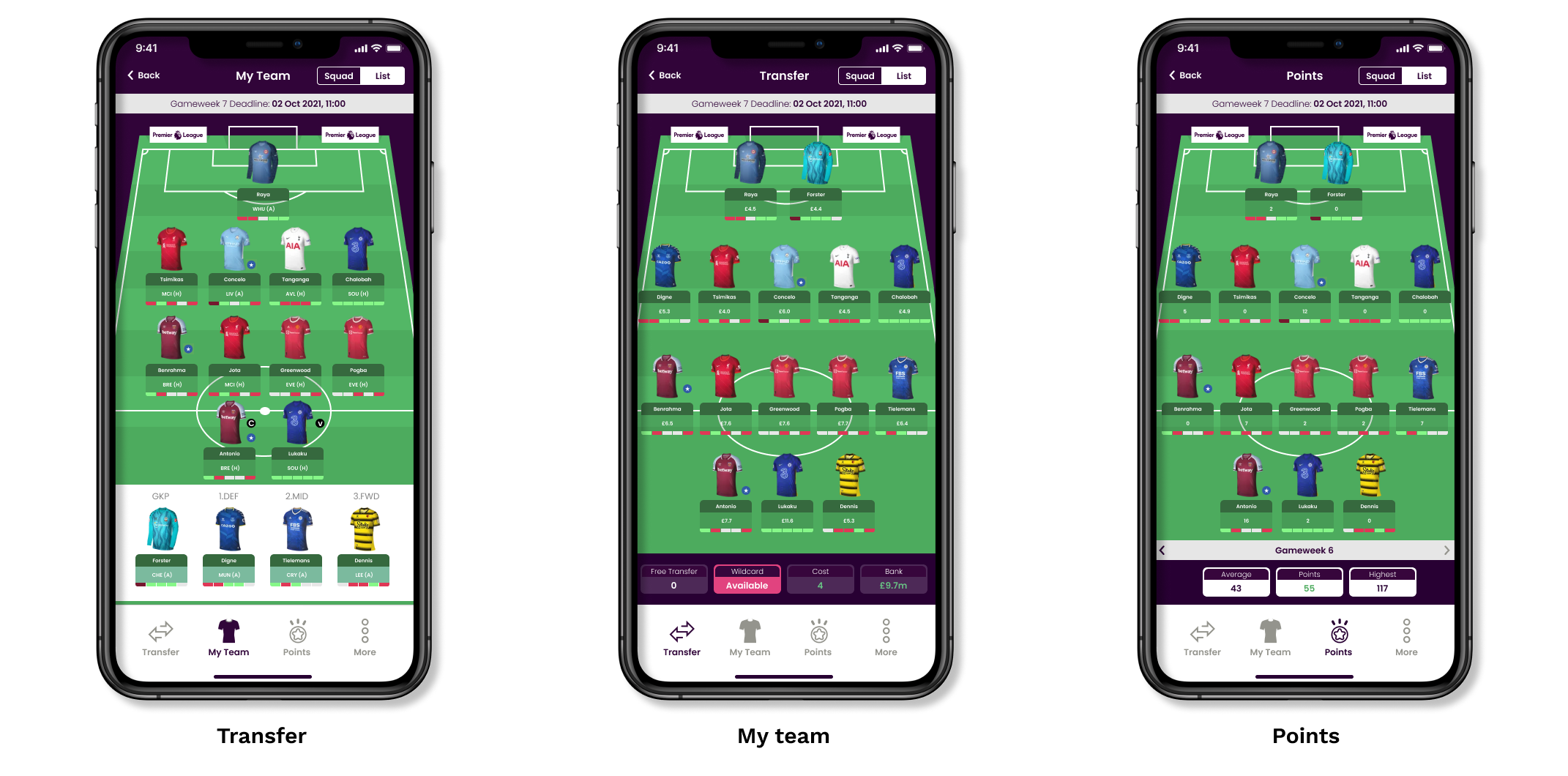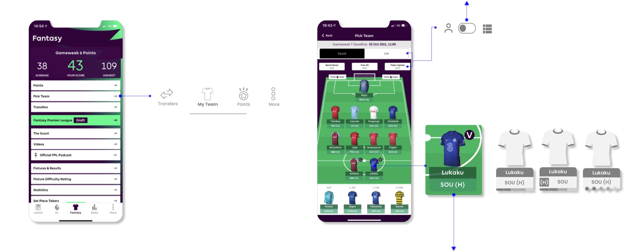 I introduced a new navigation system that sits inside the ‘pick team’ section. This will provide the user the ability to toggle between the three-game modes which are points, my team and transfers.