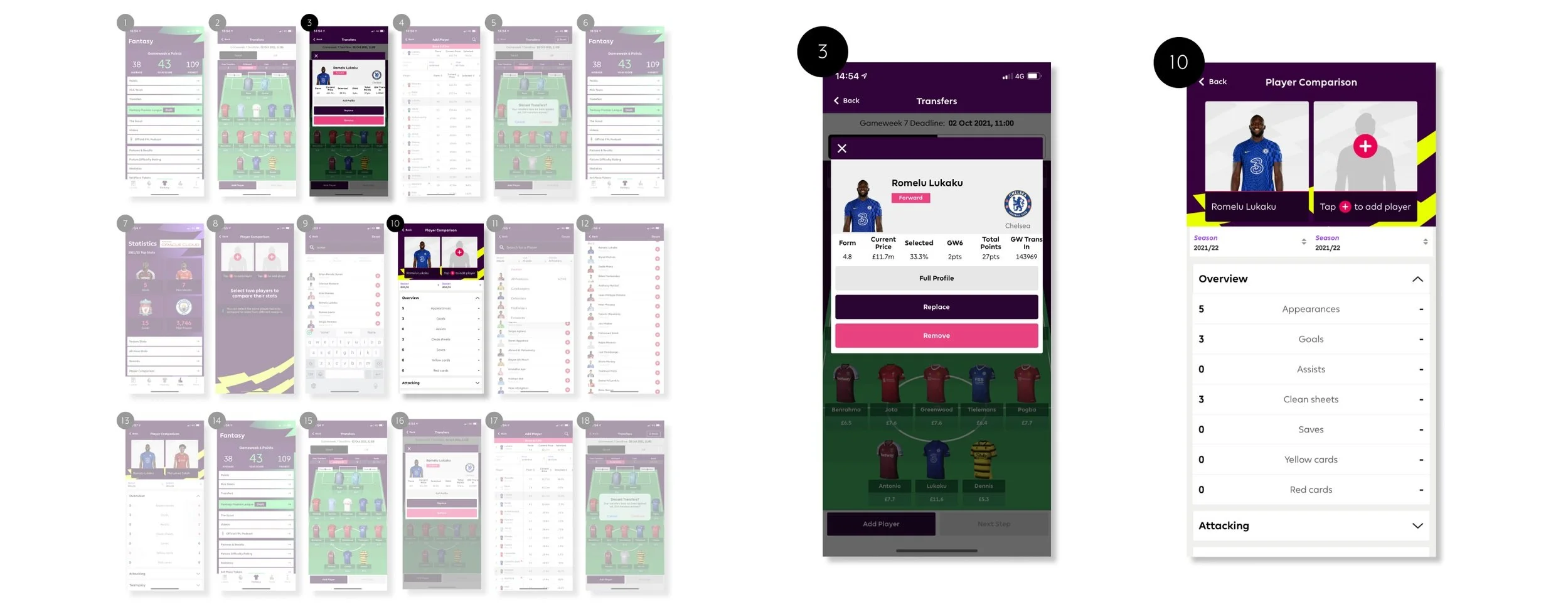 From the guerrilla user testing, I identified that it took multiple steps to reach the compare function from the transfer mode. Adding a compare button in the player information card not only makes the process quicker and seamless for the user but also cuts down the need to navigate to another area of the app.