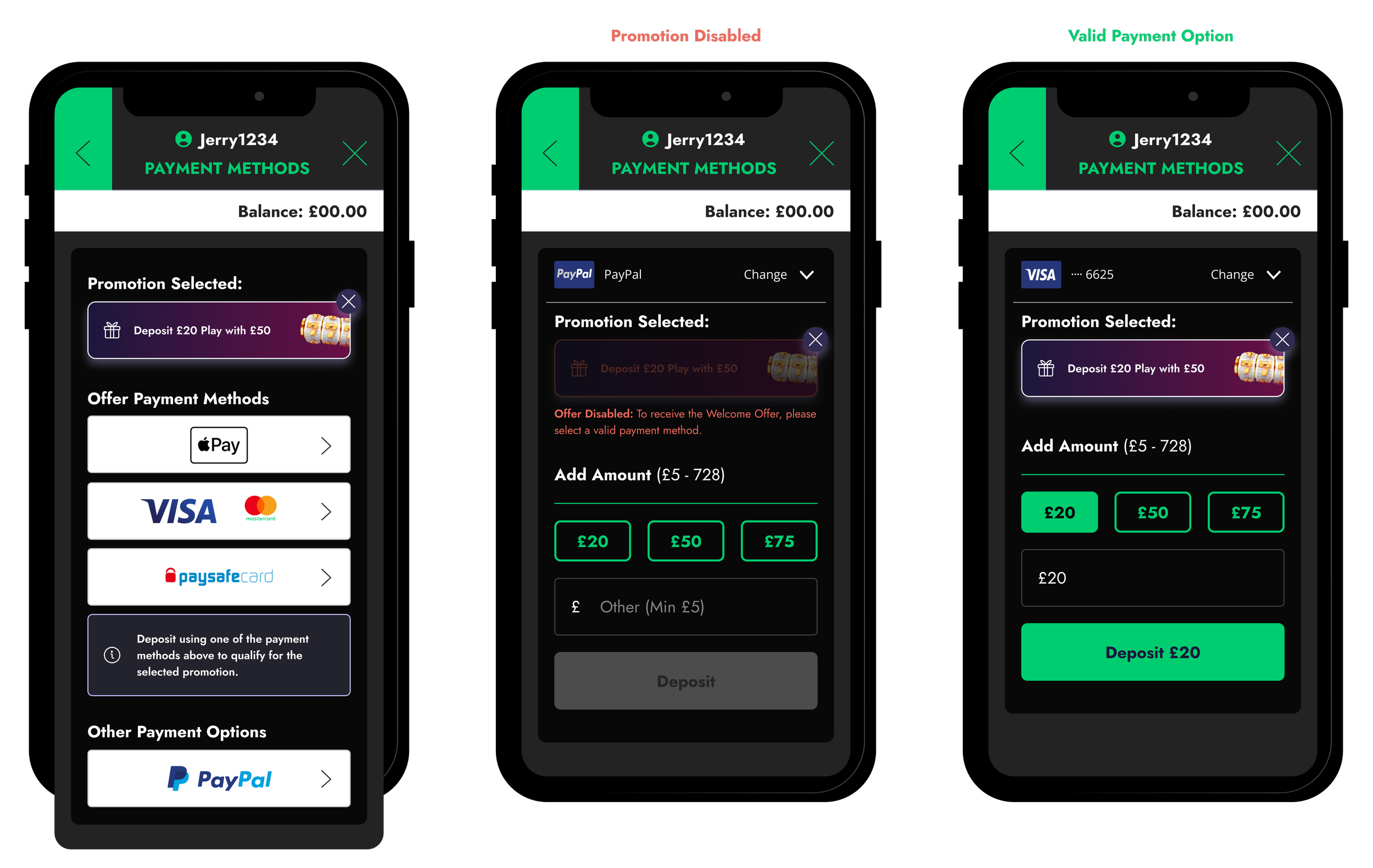 Supporting this, the promotions and bonus screens were redesigned to provide greater transparency. Users could now see valid payment methods and a complete list of eligible games, ensuring they understood how the reward worked before committing.