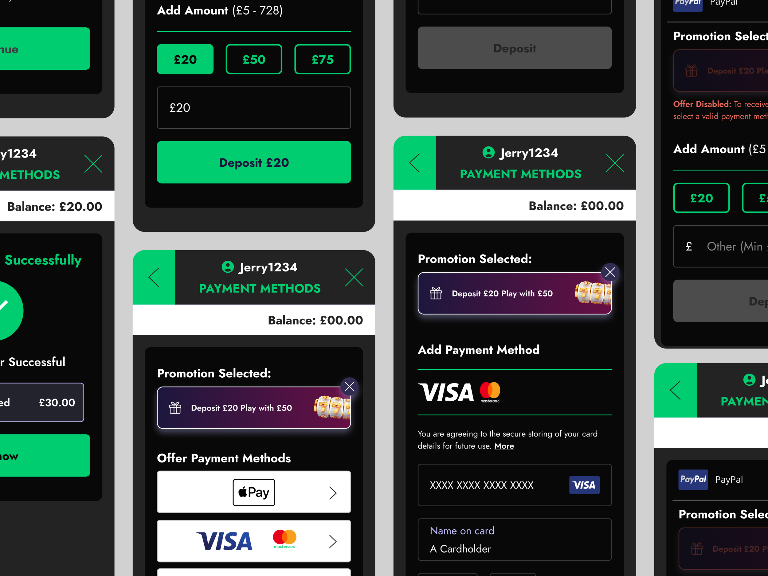 Redesigned deposit/cashier screens with explicit bonus context