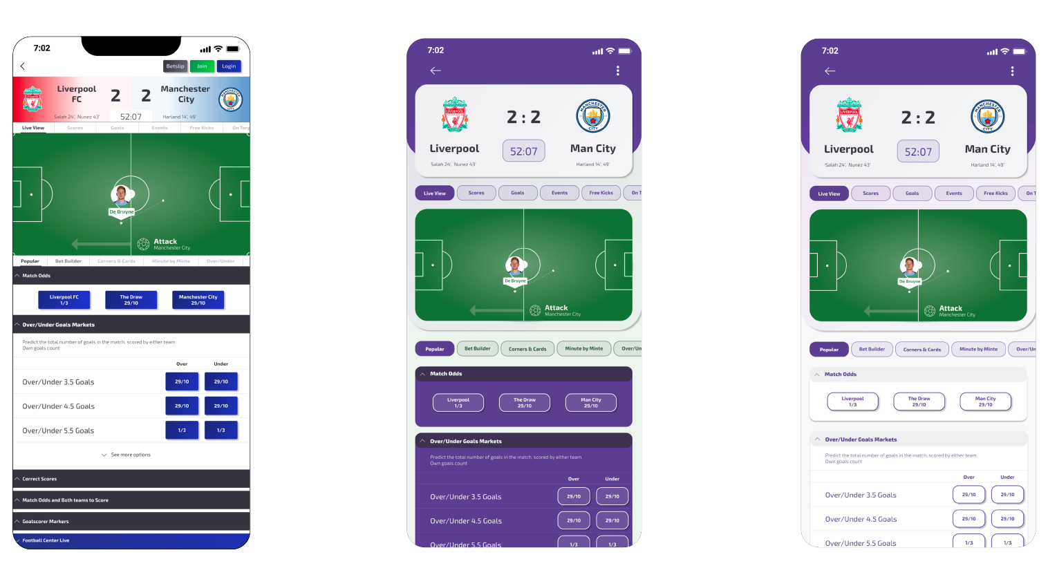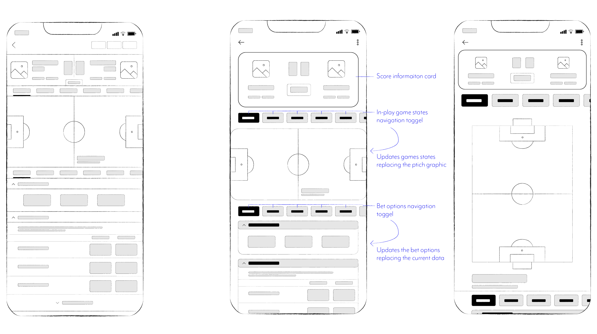 Creating layouts using the sketch elements from above, showing how the overall look and functionality of the in-play features.