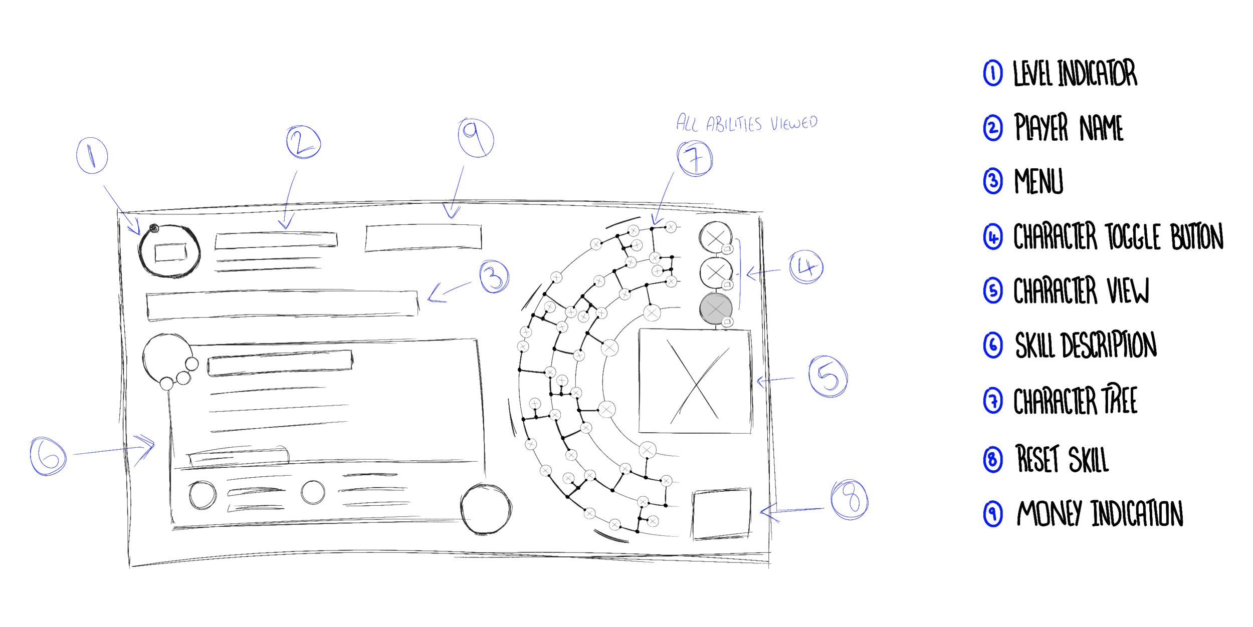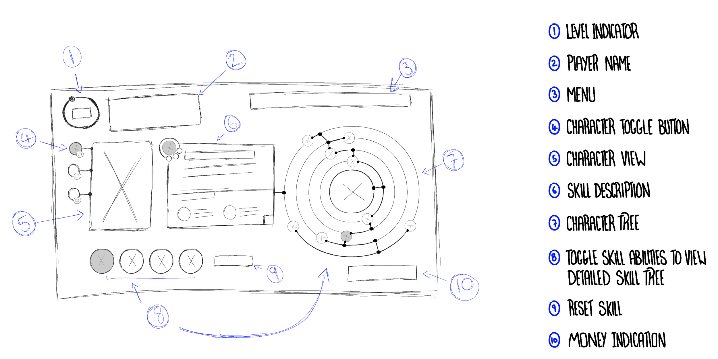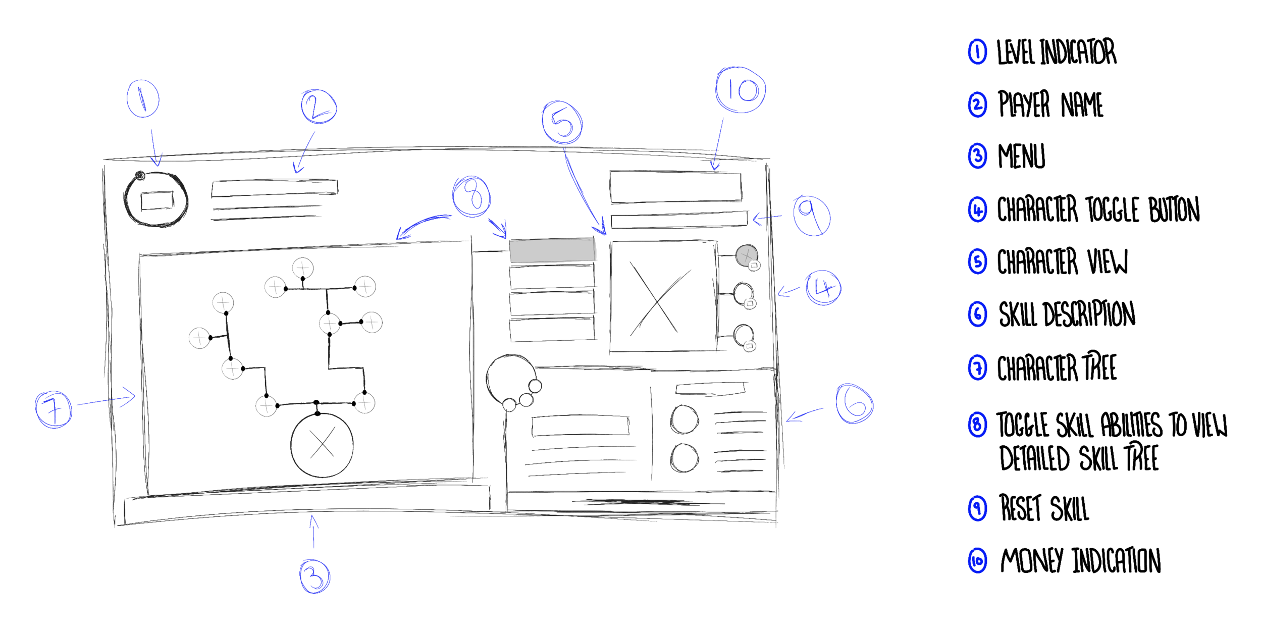 This case study takes a deep dive into the development of a character skill tree. With the help of user feedback, I was able to understand the fundamental elements needed to create an engaging skill tree system. It involved developing design artefacts from initial concepts to low fidelity wireframes and prototypes.