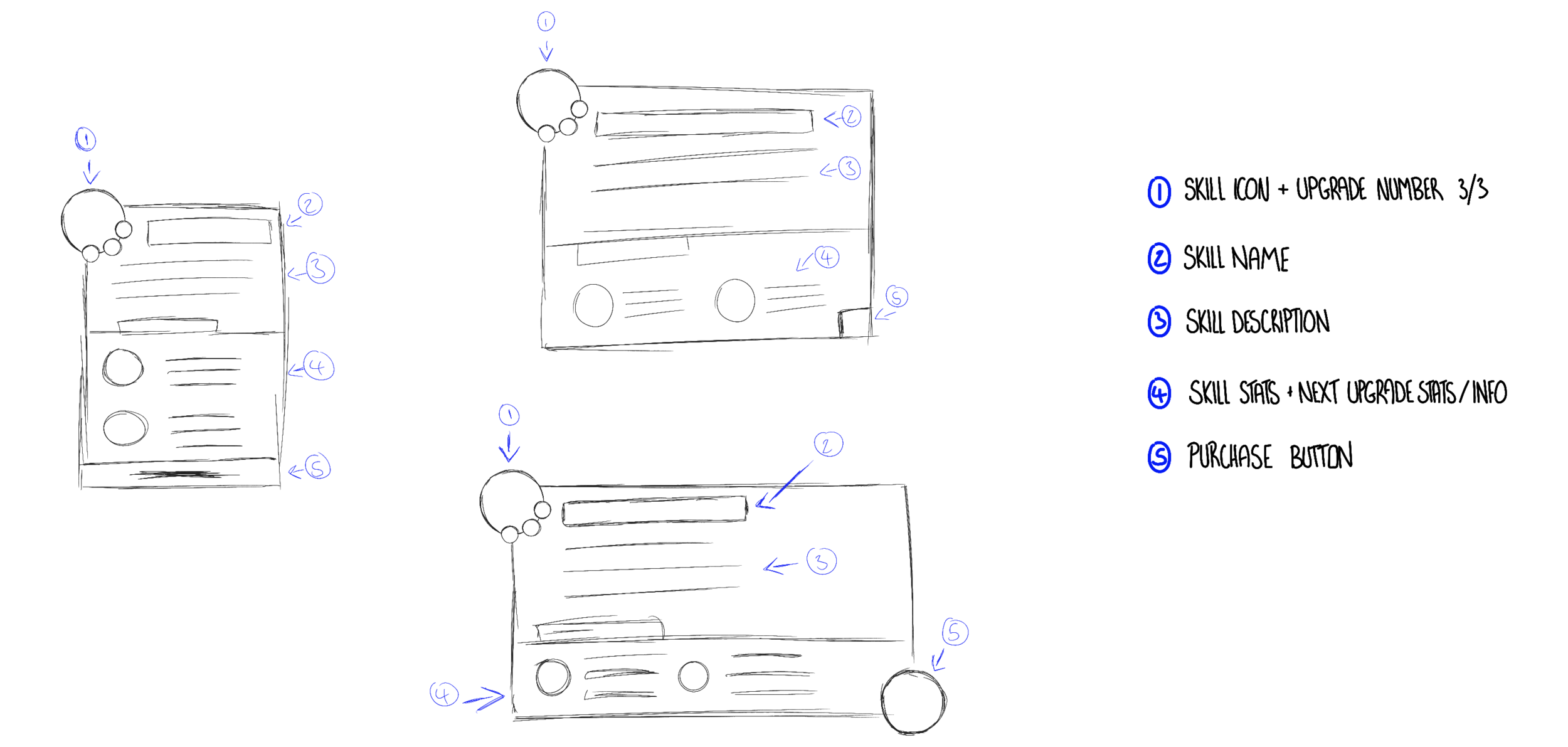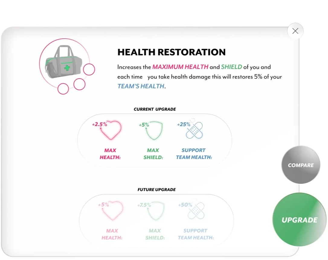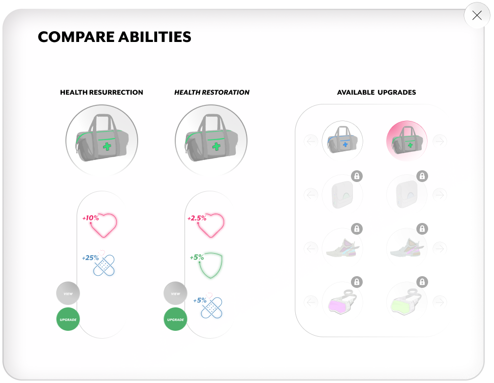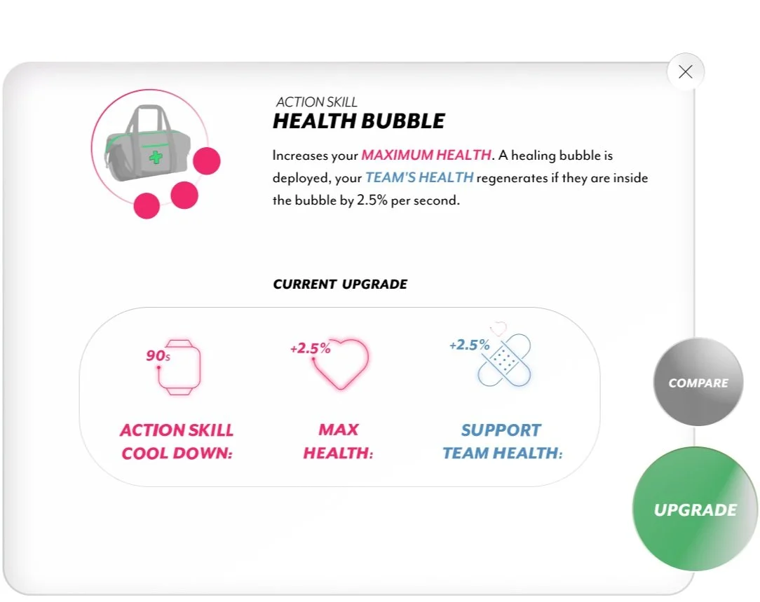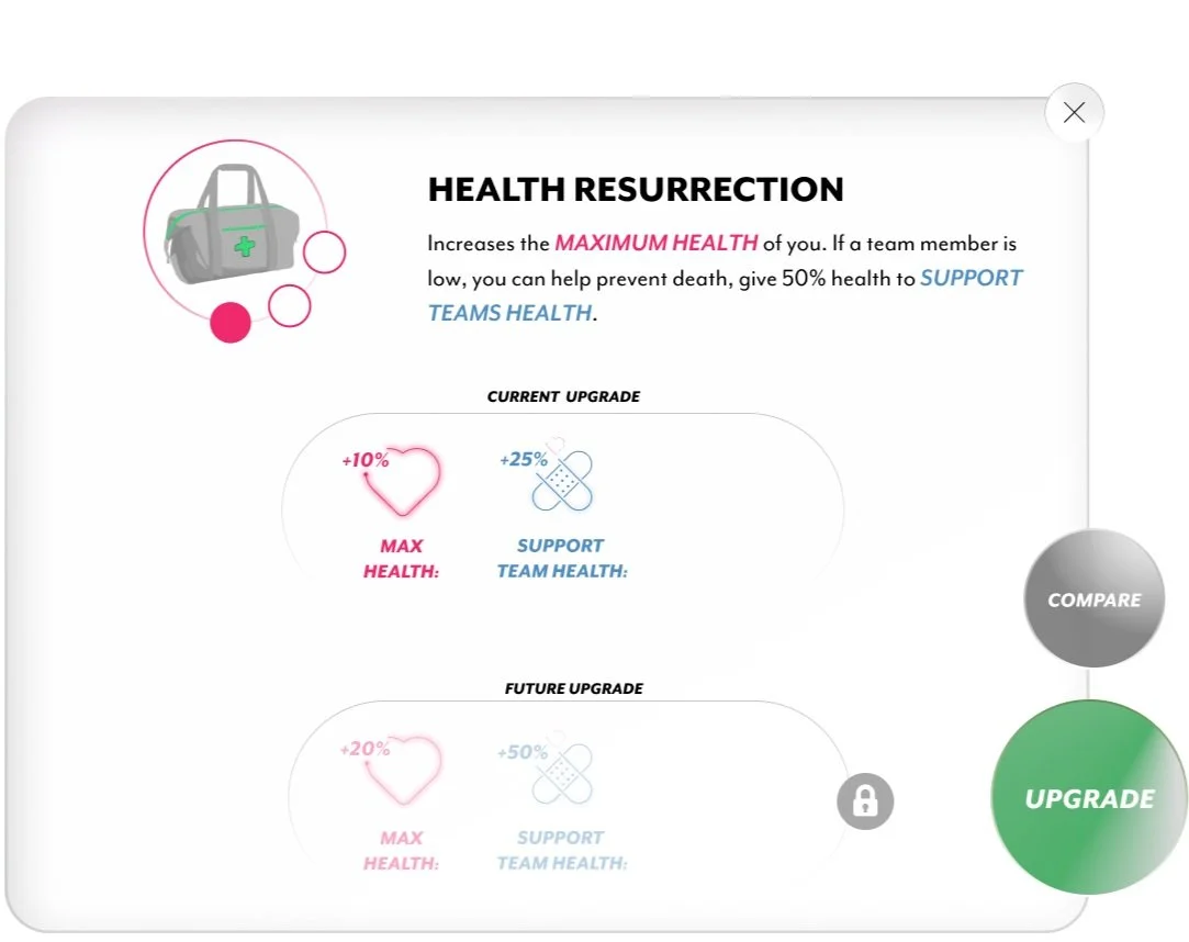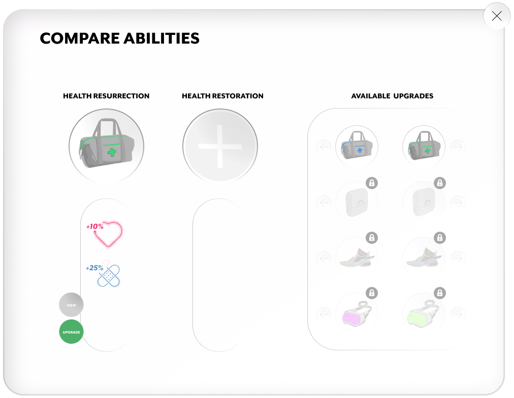 To address the choice paralysis, I created a compare functionality, which will allow the player to compare up to 2 abilities at a time. This function allows them to visually compare all the available abilities. All other abilities that the player can not upgrade are locked.